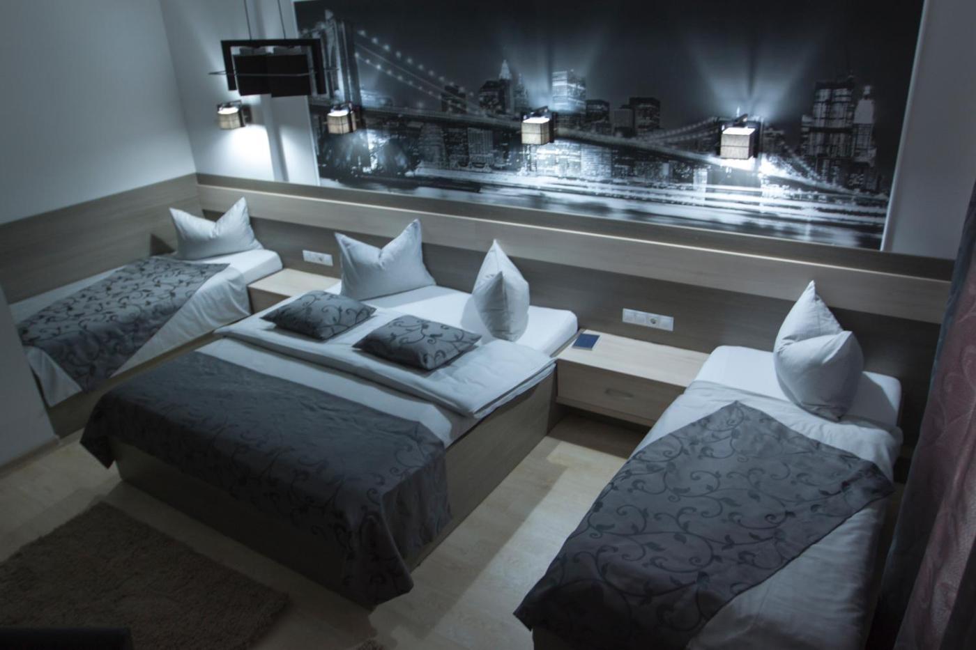 Basic Triple Room. The triple room features a private bathroom fitted with a shower and a hairdryer. The triple room has parquet floors, a seating area with a flat-screen TV with cable channels, air conditioning, a minibar, as well as a wardrobe. The unit has 3 beds.