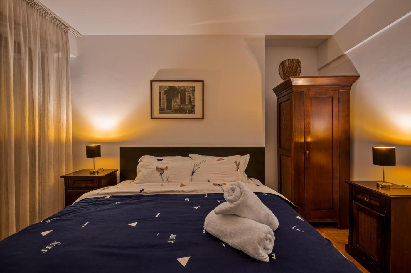 Two-Bedroom Apartment. The air-conditioned apartment features 2 bedrooms and 1 bathroom with a walk-in shower and a hairdryer. The well-fitted kitchen has a refrigerator, a microwave and a toaster. The apartment provides a washing machine, soundproof walls, a tea and coffee maker, a flat-screen TV with streaming services, as well as city views. The unit offers 2 beds.